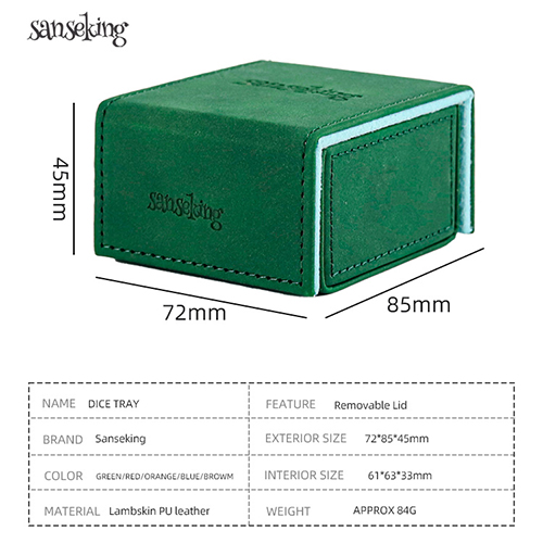 We know that gamers are always on the go, whether they're heading to a friend's house for a game night or attending a convention. That's why the PU Leather Dice Box is designed to be both portable and durable. Its compact size and lightweight design make it easy to slip into your backpack or bag, ensuring your dice are always with you when you need them.